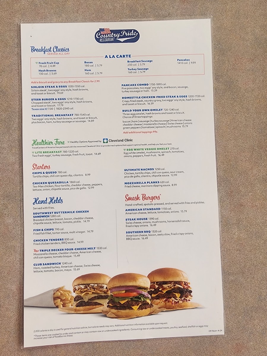 ................................US$22.98Chopped steak*, two eggs* any style, hash browns, and toast or biscuit.
