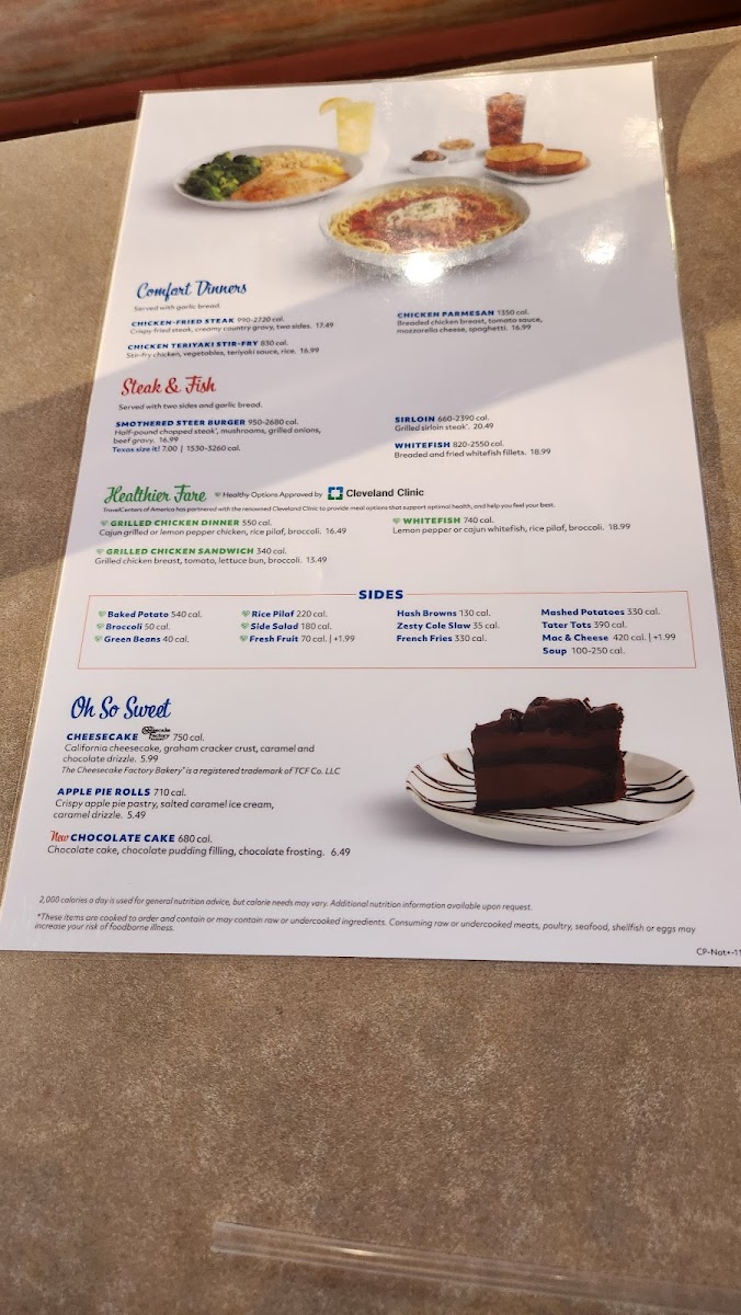 ................................US$25.28Plain, lemon pepper, or Cajun cod filet, rice pilaf, broccoli.