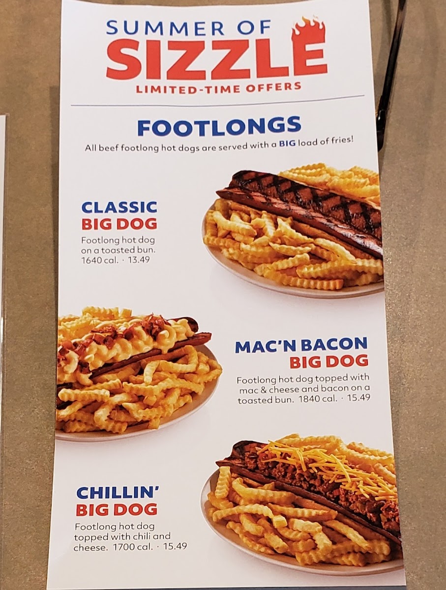 ................................US$21.88Texas-style Chili, Cheddar Cheese, Onion and Pepper Blend, Lettuce, Tomato, Onion, and Pickle.